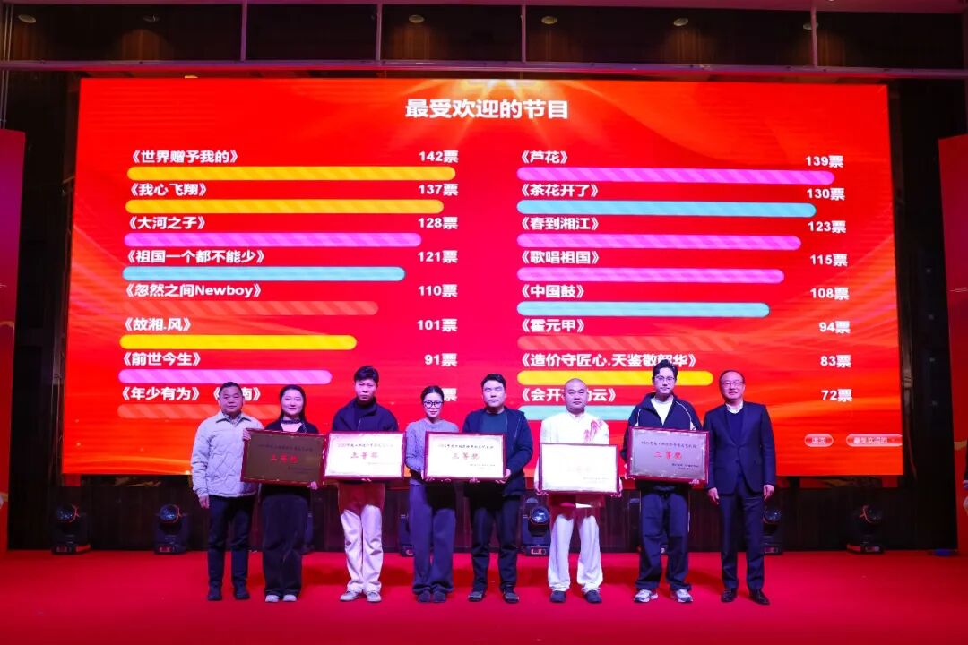 随后,年会文艺汇演环节精彩启幕,来自协会秘书处及18家会员单位的演员们带来了合唱、舞蹈、朗诵等多元形式的节目。演员们以饱满的热情、精湛的表演,生动展现了湖南造价人爱岗敬业、锐意进取的精神风貌与多才多艺的综合素养,节目兼具思想性与观赏性,赢得现场阵阵掌声,并通过现场观众投票产生了一、二、三等奖和优胜奖。年会文艺节目的成功演出为年会增添了浓厚的喜庆氛围。
